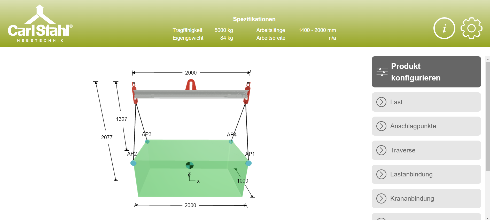This H-shaped truss has been created fully automatic with the help of a the technical product configurator. It calculates a suitable beam strength and dimension fully dependend on the loads customers want to lift.